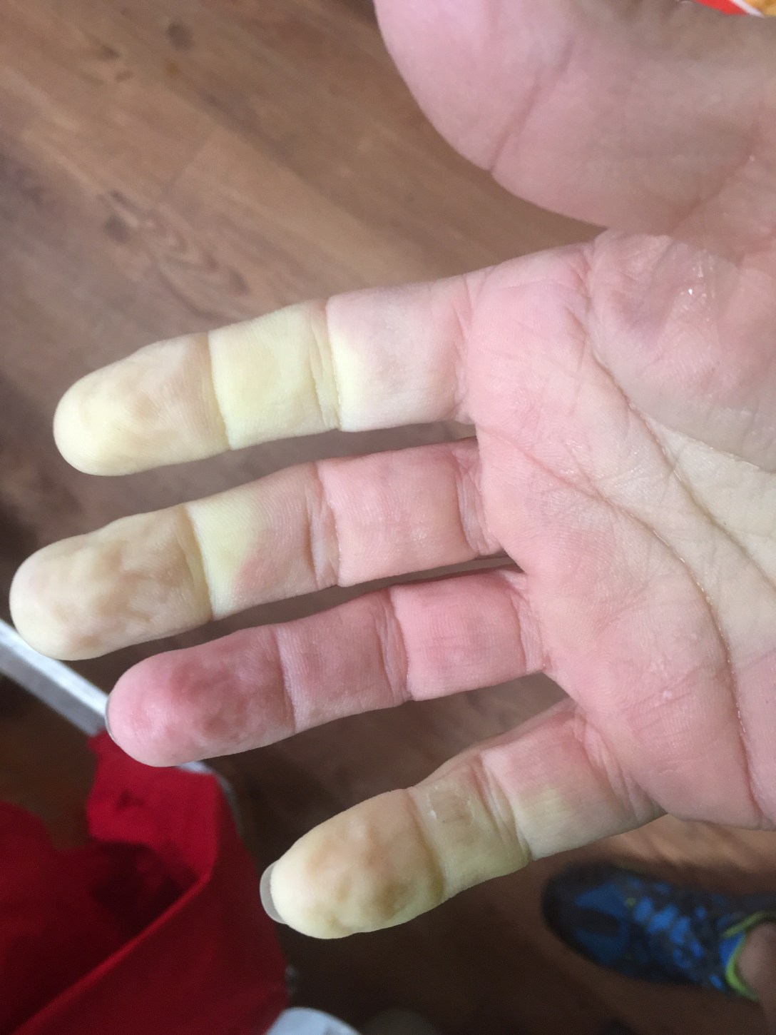 My hands after one cup of coffee and warming up inside for abour 20 min: