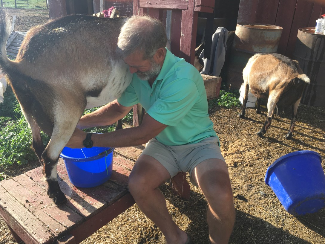 Here I am showing Ellie how to milk a goat. Button the goat was very patient: