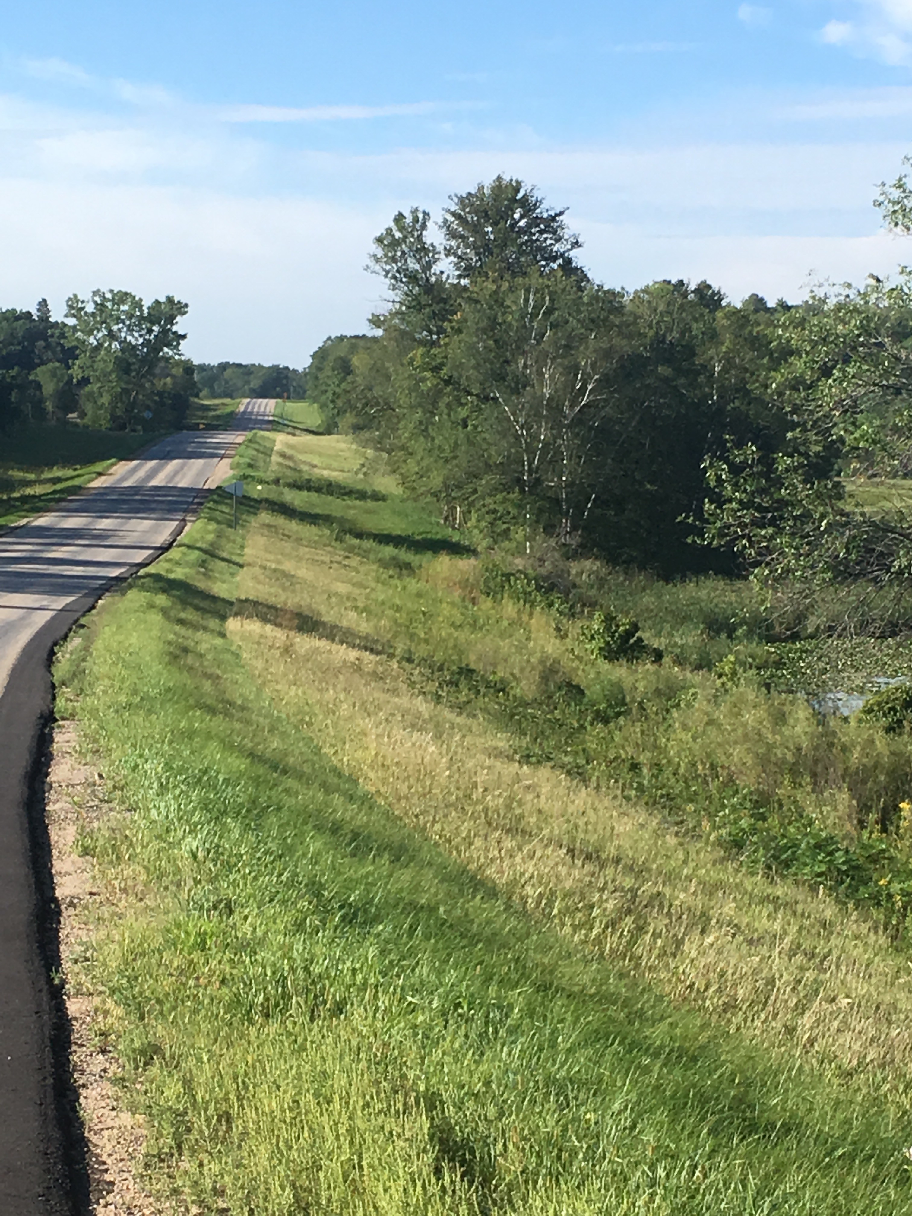 Before I go over today’s ride I want to describe my great WS experience last night. I stayed in a guest house owned by Paul & Carole who live across the street on beautiful Melissa Lake. They were having some family and neighbors over for dinner that evening and said they would like me to join them- cocktails and hors d’oeuvres at 5:30 and dinner at 6:00! We had a fantastic dinner outside on the patio and the family and neighbors were so friendly and interesting. Later a nephew (also named Paul) and I had a cigar and watched a stunning sunset over the lake. What a perfectly delightful evening! I went to bed around 10:00 and slept like a baby. The next morning as I was getting ready to go across the street for breakfast, Carole called to tell me there were wild turkeys in my front yard! Carole then fixed me a hearty breakfast and I left between 08:30 and 09:00. You know, one of my primary objectives for riding my bike across the country was to meet the people living in small towns across the US. Paul & Carole, and many others I have met just restore your faith in humanity and reinforce the fact that 99% of the people in this country are very kind, generous and rational and in spite of what the media is saying, we are going to be ok!! I only had a 49 mile ride to Wadena. The first 15 miles were on curvy, hilly secondary roads which wound around many beautiful lakes. I finally intersected Hwy 10 and stopped at a gas station for a snack break around 10:30 (I stop at pretty much every place that has food). I checked radar using WiFi and saw a front that was developing and moving to the NE so I high tailed it the last 25 miles to Wadena. About 30 minutes after I arrived, it started pouring- for the second day in a row! Daily mileage: 49, trip miles: 1,855.