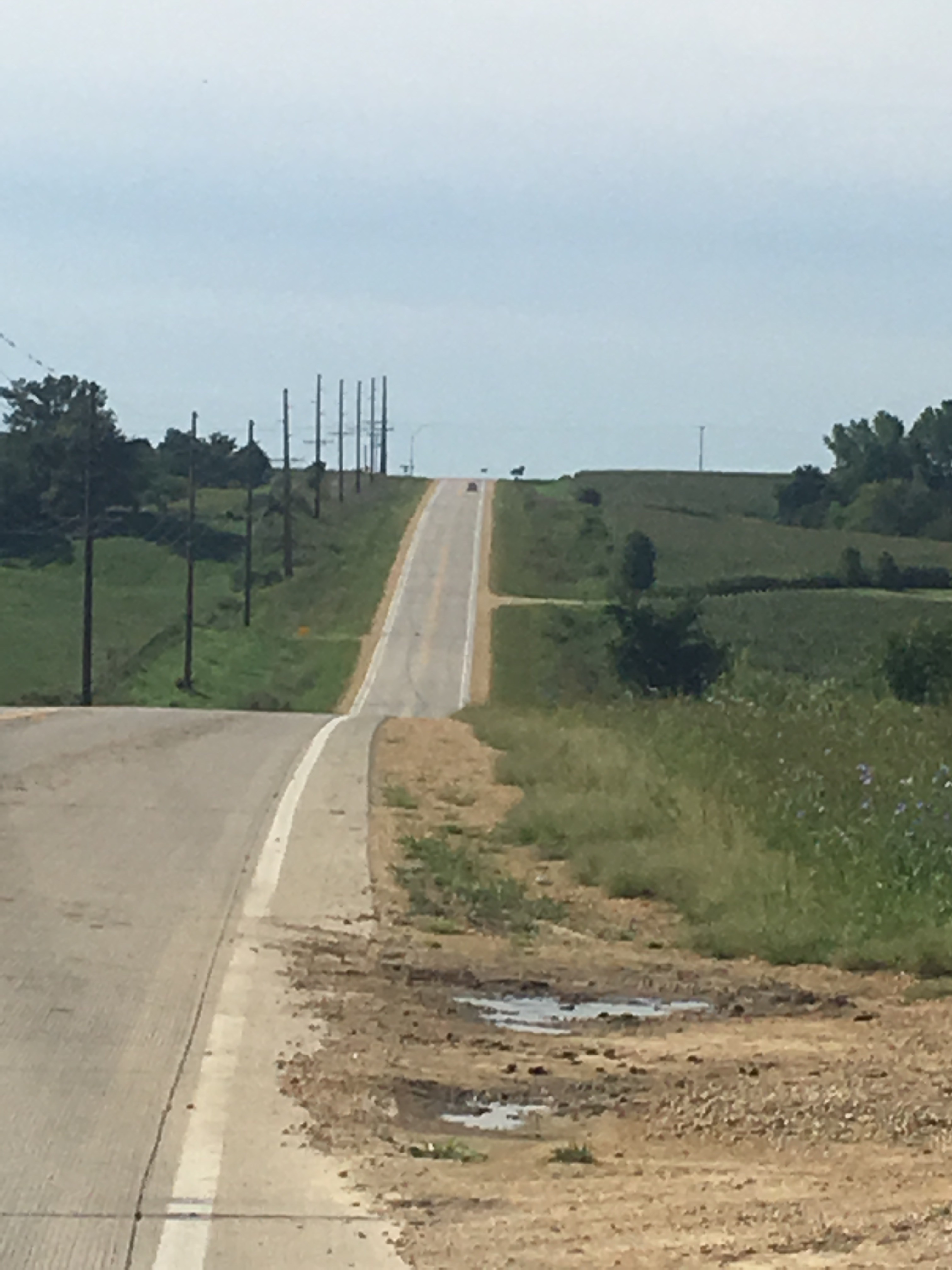 I was tired this morning when I got on my bike around 08:30. The humidity was down quite a bit and there was no fog so it was a nice change. The roads were pleasantly hilly and winding and no steep bluffs to climb! After another detour for a washed out bridge, Google Map tried to get me to go down a long dirt road but, remembering my new rule #4, I went past it and completed my ride on all paved roads. The only issue I had today was that for > 3/4 of the ride I was on roads with shoulders that were less than 2″ wide and had a dropoff into gravel. That means I had to be very focused on riding on the white line and didn’t see nearly as much scenery. There was moderate traffic, including semi’s, but the drivers gave me as much room as they could and I did not have any close calls. I had lengthy conversations about the ride with interested strangers at a pie rest stop and my lunch stop and another one at the brewery tonight. Most people are amazed I am riding 4,000 miles and don’t realize that almost anyone could do it- it’s just a question of pace. I hope that just one person tries it after an encouraging conversation with me. The wind was either still or a light tailwind and I averaged a bit over 16 mph today! The WS people I am staying with are avid cyclists and do RAGBRAI- a ride/party across Iowa each year on a tandem bike. I would love to do that one year. Mark says I (and any of my friends) can go with his bike club and thus are assured of getting in. There are more applicants than openings so there is a lottery to pick the 10,000 participants. We went to a local brewery and had mexican food so I am happy and tired now. Tomorrow I will leave Iowa and cross the Mississippi river going east into Illinois. Daily mileage: 87, trip miles: 2,432.