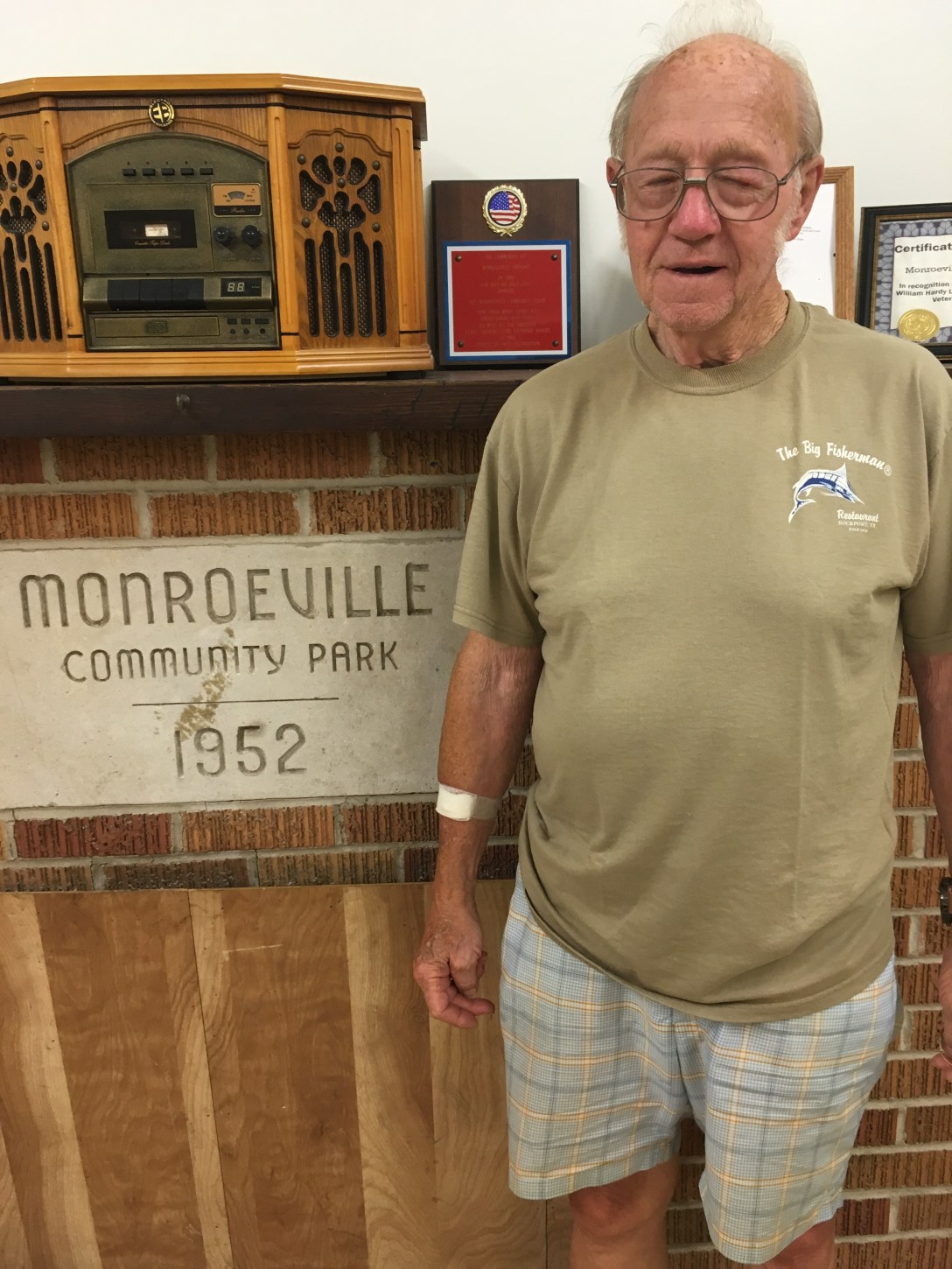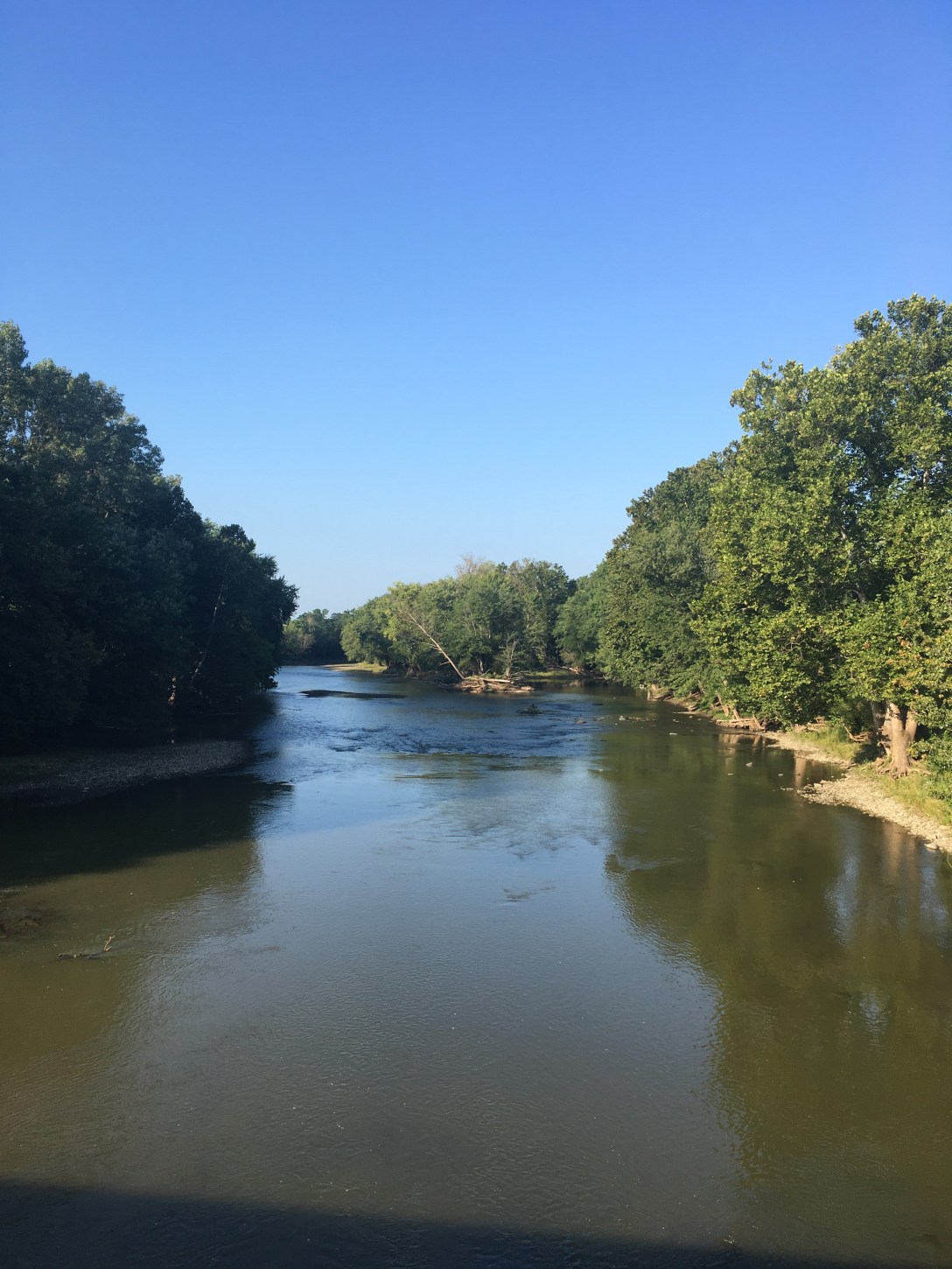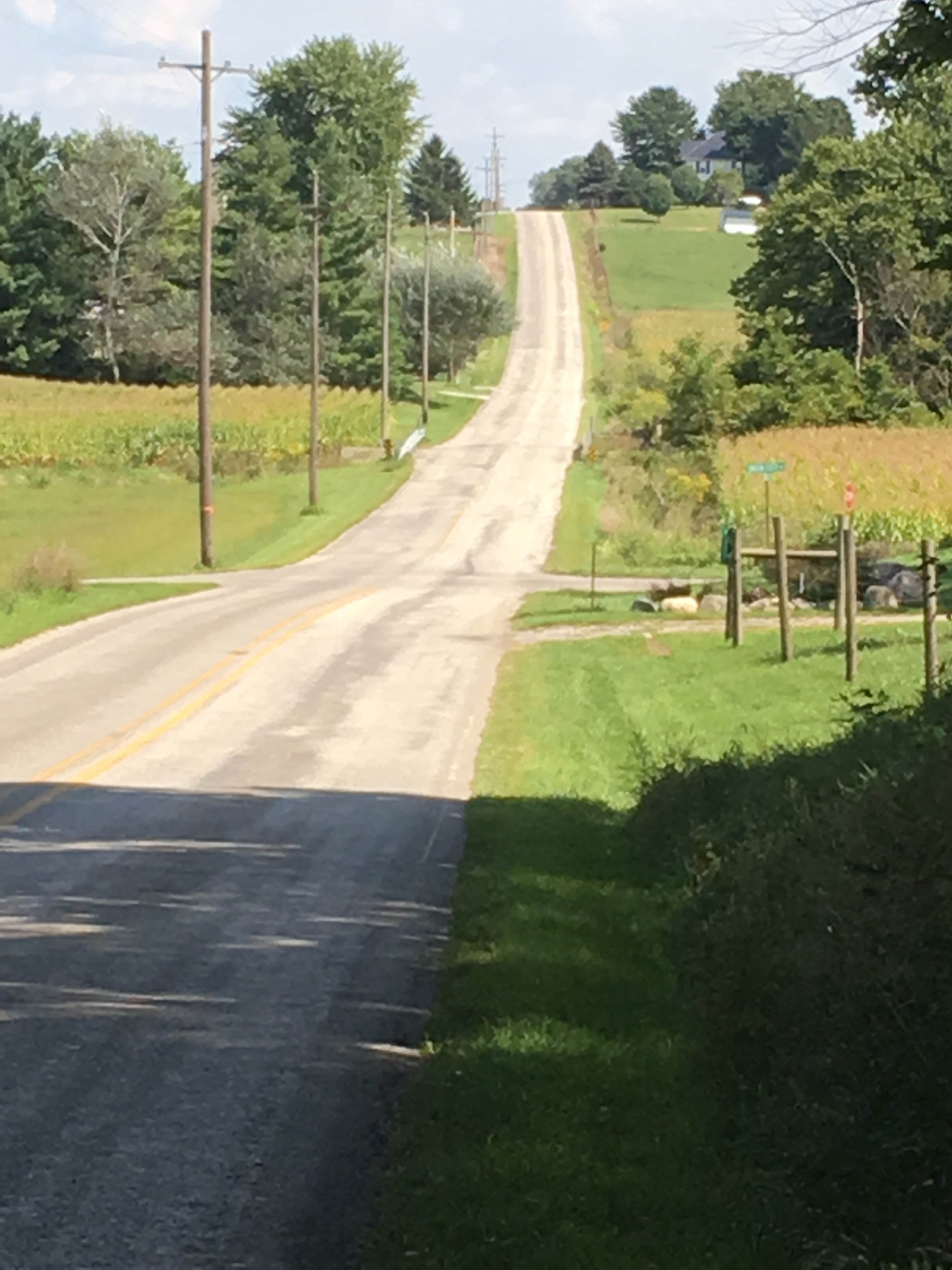 That’s Riding Across Soybeans Corn and Lakes. I rode out of Wabash and went through the Salamonie park/refuge. It was very hilly, shady and pretty. The Wabash river is dammed up to form a large lake which looked very cool and refreshing. I thought about stripping down and going in but I didn’t know if it had leeches or not so I longingly passed it by. Again, all the roads I was on were pretty and I had a cross-wind or quartering tailwind most of the day! Aside from the heat and humidity (93 and 90% respectively, and tomorrow is supposed to be hotter…) this was the best riding conditions I’ve had in weeks! I stopped for lunch at a little pizzeria in Zanesville and I had one of the best grinders I have every eaten. Then the proprietress, Alice, gave me a piece of one of her pizzas and it was exceptional, too! So after my grinder, two pieces of pizza, a pop and an ice cream bar I hit the road again. It was about another 30 miles to Monroeville and I made it in less than two hours. I am staying at a very nice facility the city has made for cross-country cyclists- it is large, air conditioned, has a bathroom with shower and laundry, full kitchen, etc. Warren, the man that let me in and gave me a key has lived here his entire life and is such a nice guy. His parents are buried in the cemetery in Aransas Pass! Talk about a small world! As soon as my laundry is done I am going to walk into town and find a tavern. Daily mileage: 71, trip miles: 2,860.
