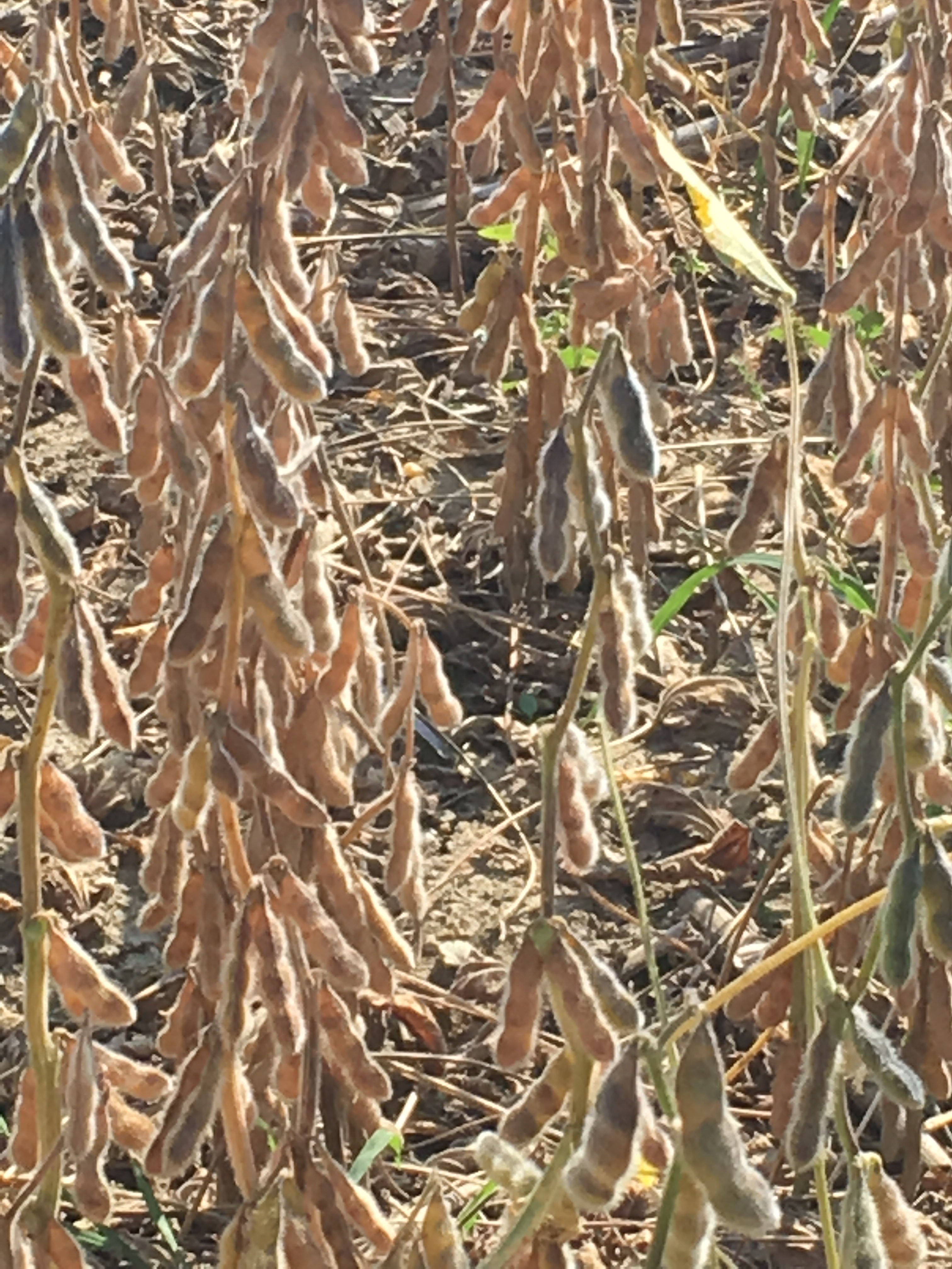 You’ve all seen photos of green soybean plants. The leaves turn yellow and then fall of leaving just the stalk with the soybeans on it. The farmers will periodically test the beans and when they have 15% water content, the max allowed by the processors, they will be harvested. Same deal for corn, all of which is sent to an ethanol plant: