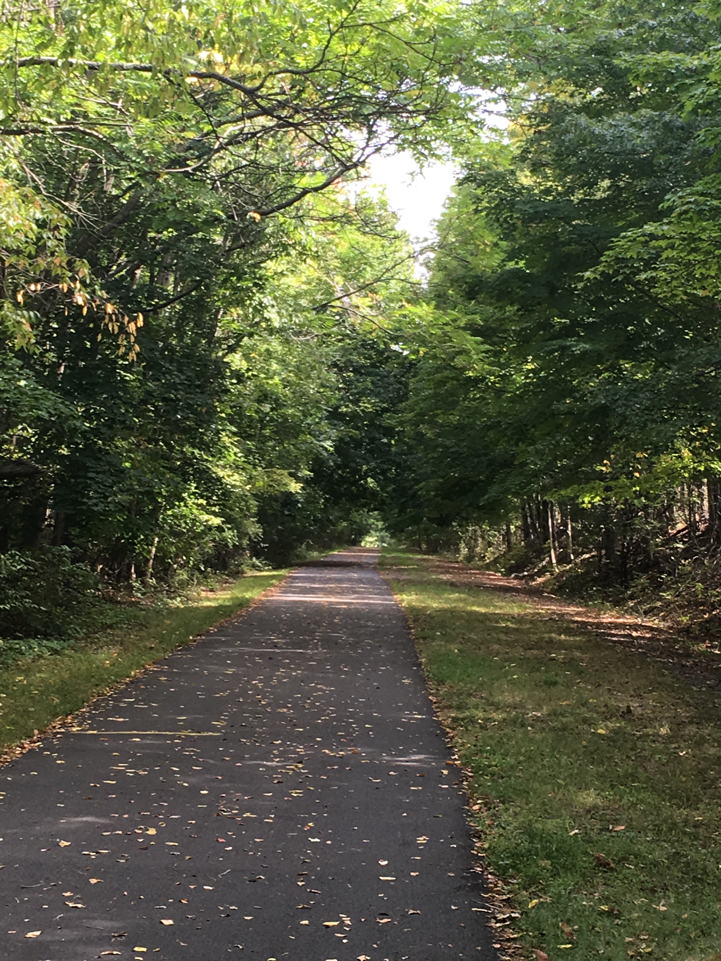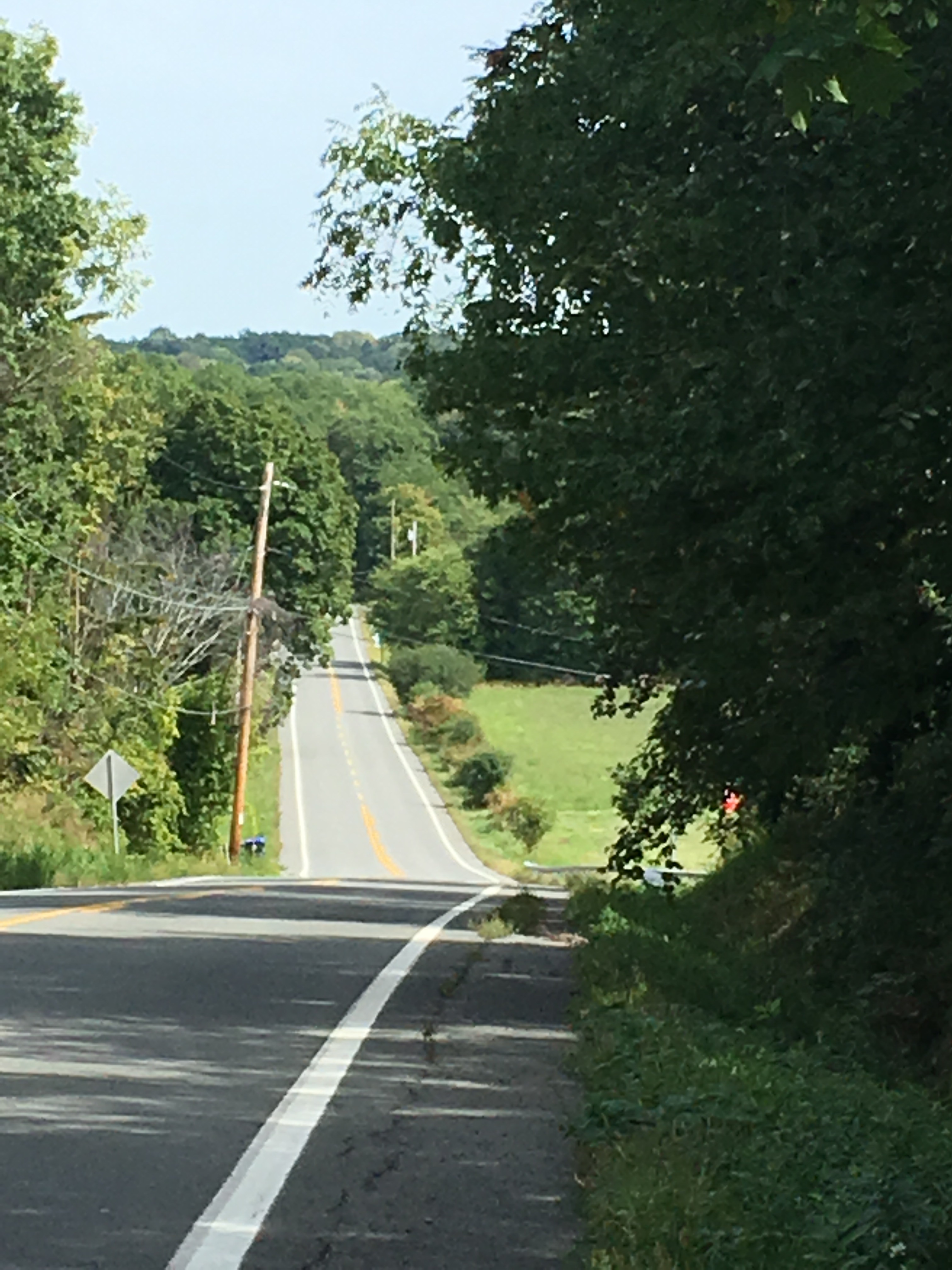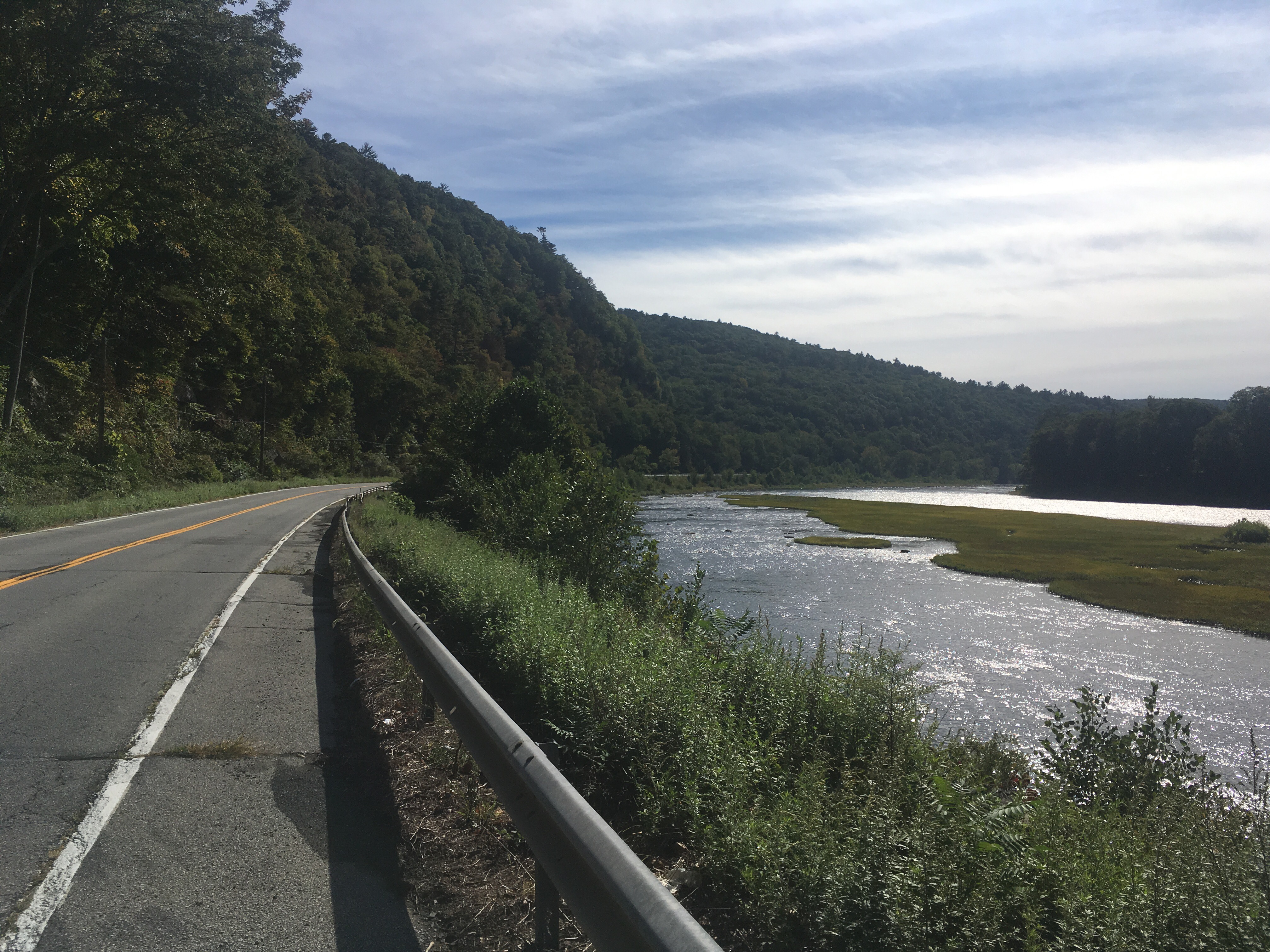 I left the B&B at 09:30 this morning after a nice breakfast and several cups of coffee. The first 2.5 miles were all downhill! Then I hit 97 South which parallels the Delaware River and it was beautiful and hilly, just like yesterday. There were some really winding sections of road along the river today both climbing up and going down- somtimes with minimal shoulders… I had lunch in Port Jervis and then had a 1,000′ climb followed by a short descent and then endless hills…Just past Middletown I intersected the Orange-Hermitage bike trail and rode it for about 10 miles. The bike trail was beautiful, shady and flat! After the bike trail I got lost around Monroe a couple of times- I blame Google Map not my routine inattention to directions, but eventually found my way to my sister’s house where Janet and I will stay until Saturday morning! I was glad to finally arrive in Monroe; it was a long, hot, hilly ride. I think I am ready for another couple of rest days before my last two days of riding. Daily mileage: 60, trip miles: 3,698.
