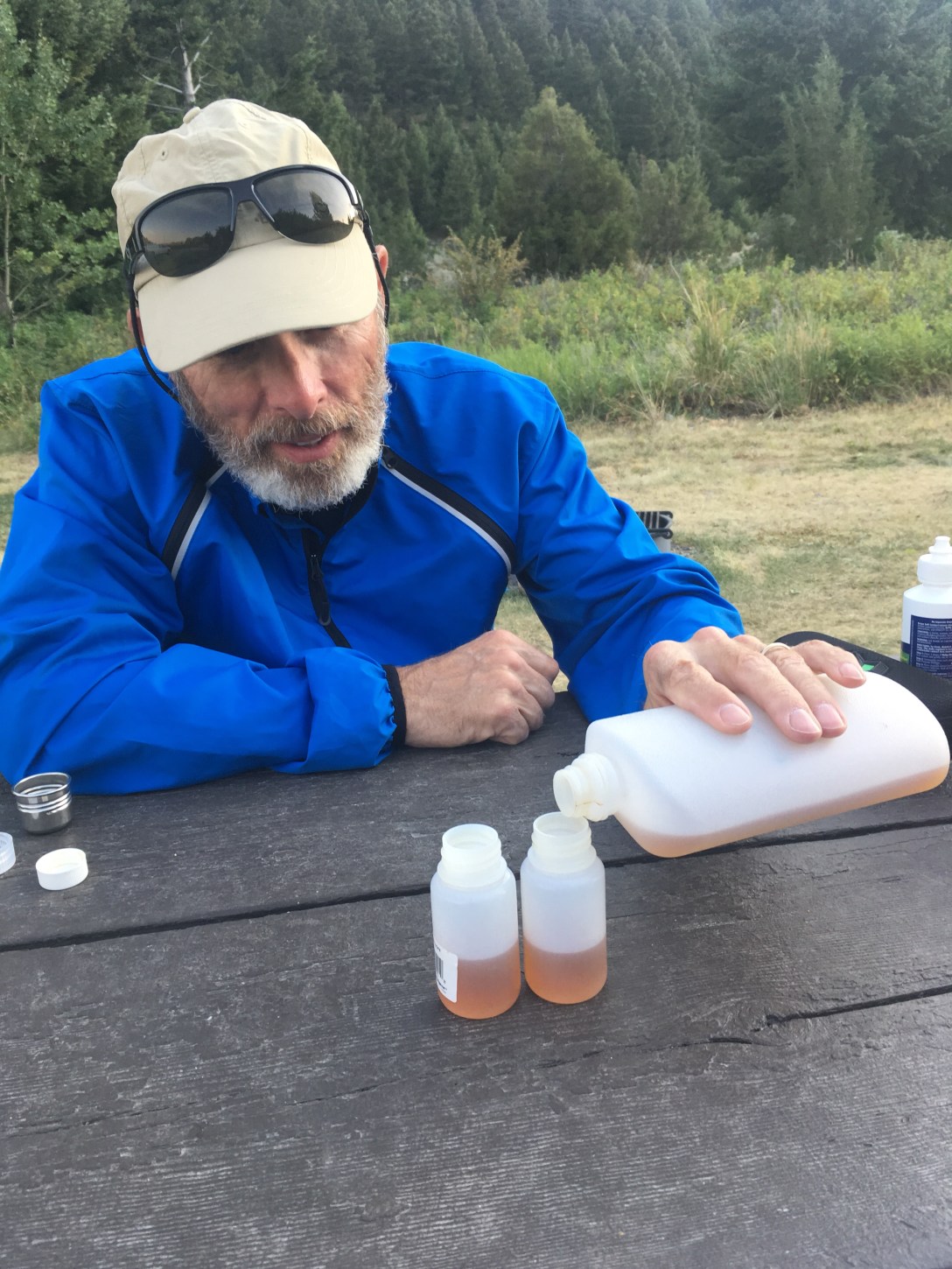 We are at a very nice campground on the Big Hole river in Montana. After bathing in the (very cold) river, we washed clothes, set up camp and then cooked dinner. After dessert we had a wee dram of bourbon and a small campfire- lovely evening!