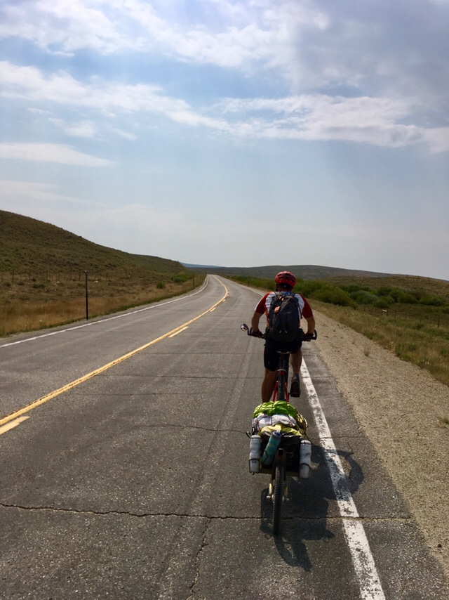 We had a water filter failure so our start was delayed a bit while we employed the “camp” filtration system to top off all our water bottles. We finally hit the road around 09:50. We had about 3 miles of a miserably inadequate excuse for a dirt road then hit pavement! The next 30-35 miles were beautiful- some roly poly but some favorable winds as well. With the favorable conditions and our stronger legs, we averaged 13.6 mph for the 35 miles to Pinedale! This is a record that will surely never be broken during our lifetime.