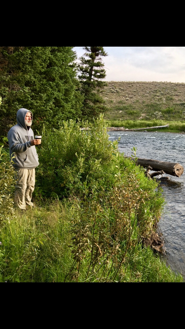 Ahhh, hot cafe mocha on a cold morning while standing in the sun a few feet from our campsite: