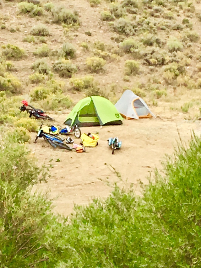 The road our maps showed as dirt turned out to be freshly paved! It made for a much easier climb and we set a new trip downhill record of 42.4 mph! About 10 miles later a highway construction worker stopped his truck and asked if he could give us some water. We said sure and told him about the ice chest we saw earlier. He said one of the workers bought 5 ice chests at a thrift store and bought water, ice and snacks every morning to put in them. He was doing this for cyclists because it was such a remote stretch of road. Amazing!