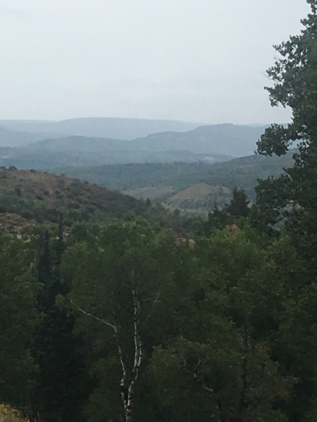 After a whopping big ranch breakfast and lots of conversation with the owners, we finally left the Ladder Ranch around 09:00. It was a cool and overcast morning but we had lots of climbing to do so that was ok.